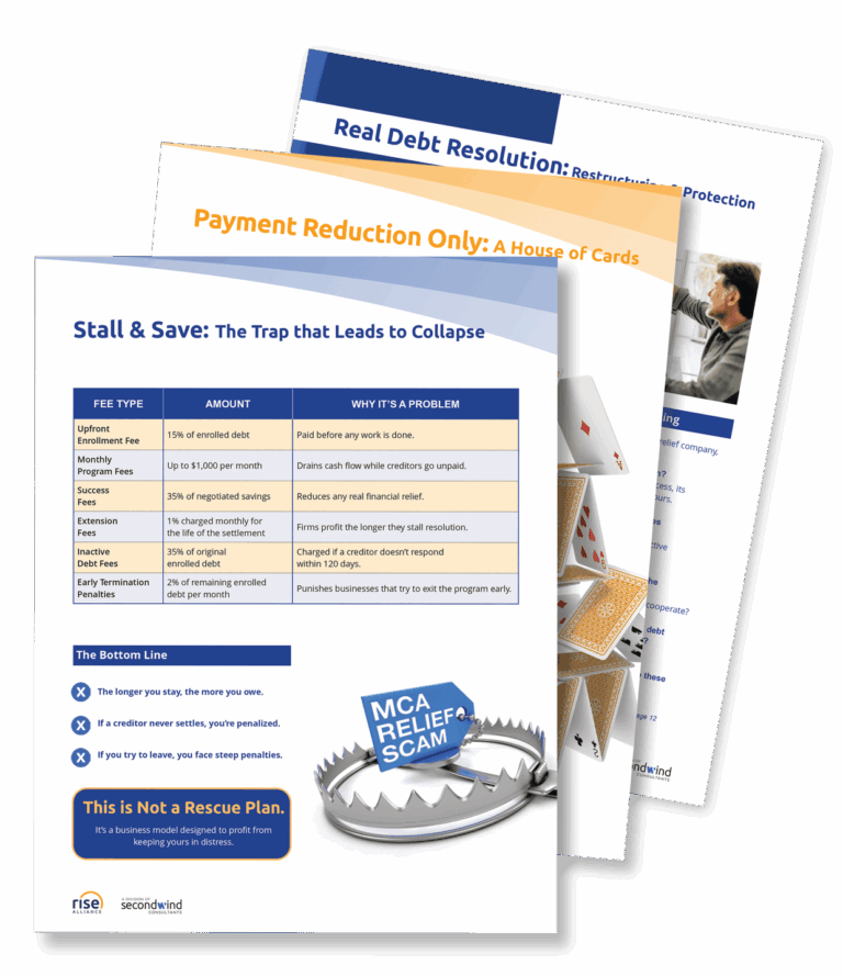 This essential guide cuts through the noise of “MCA relief” marketing pitches and reveals the most common schemes that put your business at risk. You’ll discover: